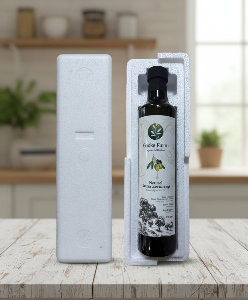 Ürünümüz, uzun ömürlü ve çevre dostu 2 x 500 mililitre cam şişelerde sunulmaktadır. Bu sayede, zeytinyağınızın tazeliği ve kalitesi en iyi şekilde korunur. Gönderimlerimiz strafor korumalı özel ambalaj ile sizlere ulaştırılmaktadır.
